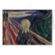 The Scream aka Skrik (1893) by Edvard Munch is a vintage expressionism fine art painting. The Scream is Munch's most famous work and one of the world's most recognisable paintings in art. It has been widely interpreted as representing the universal anxiety of modern man. Painted with broad bands of garish colour and highly simplified forms, and employing a high viewpoint, the agonised figure is reduced to a garbed skull in the throes of an emotional crisis. With this painting, Munch met his stated goal of “the study of the soul, that is to say the study of my own self”.
