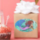 Original watercolor painting by Sandra Gale of a fantasy mermaid holding a glowing ball. This under Sea design makes a beautiful wearable piece of art. The pale colours in a sea foam green underwater scene looks uniquely beautiful.
