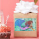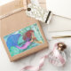 Original watercolor painting by Sandra Gale of a fantasy mermaid holding a glowing ball. This under Sea design makes a beautiful wearable piece of art. The pale colours in a sea foam green underwater scene looks uniquely beautiful.