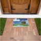 Four seasons appear on a lone tree standing in a grassy meadow. The top branches are bare and snow-covered, giving way to pink blossoms, which turn to dark green leaves, which turn orange and gold and fall to the ground. Amid the autumn leaves on the ground are blue spring flowers and melting snow.