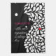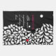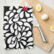Personalised black with white wind blown petals and a cute red heart design. Flowers and swirling white petals against a bold black background. Original digital painting. Crisp edges, sharp lines and white dots and swirling petals. Personalise all text. Add your name, and keep or change the quote “the secret ingredient is always love”.