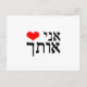 The sentence 'I Love You' in Hebrew with red heart Postcard