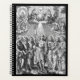 In this engraving of heaven by Hieronymus [Jerome] Wierx from c. 1600, the focus is on the Archangels. + At the top of the image are the Holy Trinity with symbols of the Evangelists (centre); the Blessed Virgin Mary with SS. Peter and Paul (left); and, SS. John the Baptist, Stephen the ProtoMartyr, and Lawrence of Rome (right). The size of these figures is not indicative of theological importance. Rather, their reduced size is a function of composition in perspective that indicates a great distance between figural groups in the picture plane and emphasizes the Archangels as the focal point of the artwork. +