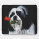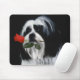 A Shih Tzu Dog Breed Photograph holding a rose in his mouth.