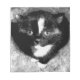 This cute kitten walked into my husband’s stables and ended up staying there. I’ve digitally altered the image to look like a close-up, black-and-white portrait of a tuxedo kitten, captured in a moment of quiet curiosity. The kitten's large, reflective eyes gaze intently, drawing focus amid the stark contrast between its dark fur and white markings. Soft textures surround the kitten, enhancing the feeling of warmth and solitude, while the monochromatic palette adds a layer of artistic mystery to the composition.