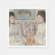 This design features a painting by the French Impressionist artist Berthe Morisot (1841–1895). It depicts two elegant sisters seated together on a sofa. Both of the sisters look alike: they have similar brunette hairstyles and they are both wearing dresses that are white with blue dots. They are wearing black choker-style necklaces. The ladies are in an elegant sitting room. The sister on the right is holding a fan in her hand. The original artwork was painted by Berthe Morisot in 1869.