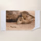 the sleepy look of a dromedary on beach towels