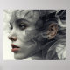 A young woman with a veil of black and white smoke on her face.