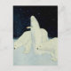 Vintage illustration of The Snow Maiden Gathering Broken Hearts. She is the queen of the vast regions of snow, and when the moon is bright, she leaves her castle of ice and wanders the desert of white in search of all the banished, broken hearts. She is holding three beating hearts in her hands and beside her are two great polar bears like guardians. Illustration by Edmund Dulac.