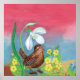 The Eurasian wren is a brown pea-coloured singing bird. We recognise it by a tiny and thickset body with a raised tail. Although the smallest European bird with the shortest wings, it has a very strong voice. We can observe it in humid forests, gardens, hedgerows, near springs, streams and marshes. The snowdrop and the wren bird summon the spring Poster. Snowdrop on early spring. Playful and colourful spring motif. Illustration about Spring Theme. Gift for nature and bird lover. Nursery decoration motif. Spring home decor. It's the time for new beginnings, optimism, new seasons, signs of spring, hope, courage, change. Snowdrop, primrose flowers and bird decorative design for Spring Easter.