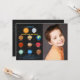 A colourful solar system chart is paired with your child's photo to create this unique birthday invitation to a space age party.