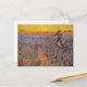 The Sower by Vincent van Gogh is a vintage fine art post impressionism daily life portrait painting featuring a peasant farmer on a farm and sowing seeds in his field at sunrise.