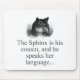 Cat lovers know that cats are our life, our children. Show the world your love of cats with this cat-inspired design featuring the quote: The Sphinx is his cousin, and he speaks her language...