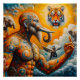 The artwork depicts a powerful and mystical scene, blending elements of spirituality, mythology, and nature. The central figure exudes a sense of serenity and strength, while the surrounding animals add to the overall aura of power and mystique. Central Figure The central figure appears to be a goddess or deity, adorned with intricate golden jewellery and a serene expression. Her half-shaded face could symbolise duality or a connection between different realms. Her gentle interaction with the tiger cub suggests compassion and harmony with