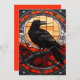 Depicted in stained glass, a spooky, creepy raven turns his gaze on the viewer.