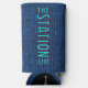 This cooler has The Station logo in blue on both sides. It also has a background of tweed. When you look at the bottom, you will see our avatar!
