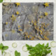 A bit of a distorted grey stone wall there are also gold vines and stars on the wall along with shadows. The design was created digitally on a computer with special effects.