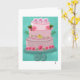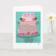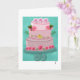 Grand and ornate, this piece features a towering three-tier cake set against a rich teal backdrop. The contrast between the deep background and the lush, realistic pink roses creates a stunning visual depth.