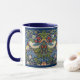 Coffee mug featuring William Morris' The Strawberry Thief with a bird taking strawberries.