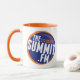 The Summit FM logo on an orange and white coffee mug!