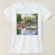 The T-shirt is decorated with a humourous painting of of Swans in boats a play on the Boston Public Gardens "Swan Boats."