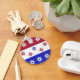 This design was made using Artrage. Designed in a rectangle with stripes of red, white and blue. The stars are also red, white and blue. This represents the American Flag for the holidays. This is a button key ring and will make a great gift.