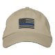 The symbolic Thin Blue Line on a US Flag embroidery. A great embroidered hat gift idea for memorial and remembrance occasions.