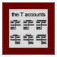 The basic tool of bookkeeping: The T accounts for assets, liabilities, income, expenses, owner's drawings and owner's capital.