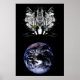 Cat owners already know that cats rule the world. This image sums it up! The poster is a mixture of a photograph and a digital painting. It features a black and white illustration of a tabby cat with different coloured eyes – one blue and one green to represent the earth and sky – looking down on planet Earth. The photograph of Earth is as seen from Apollo 17. Image courtesy of NASA.