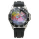 Has heft and feel of expensive stainless steel quartz wrist watches. Solid construction and good looks. Although it had a really top quality rubber strap, I substituted a stainless steel "Shark" style mesh strap, which I think is the most comfortable strap available. Perfect. True colors of original image. Clear, crisp image precisely aligned and spaced.