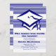 A unisex design in blue and white featuring a graduation cap with a horizontal-striped background. (PAB)