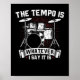 This funny drummer musician drumsticks rock handhorns design shows the tempo is whatever i say it is . Perfect for musicians who loves playing a drum kit or drum set with bass and snare drum in a band on stage as a music lover in difficult times . The design features a drum set or drums kit .