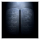 Two stone tablets with the ten commandments etched on them lit by a dramatic spotlight on a dark background