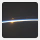The thin line of Earth's atmosphere and the rising sun featured with horizon.