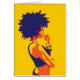 Afrocentric woman in brilliant colours thinking about her next move.