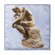 The Thinker--------ON DENIM LOOK BACKGROUND-----USE ANY COLOR FOR BACKGROUND------THIS SIZE MAKES A GREAT DRINK COASTER------ (French: Le Penseur) is a bronze sculpture by Auguste Rodin, usually placed on a stone pedestal. The work shows a male figure of over life-size sitting on a rock with his chin resting on one hand as though deep in thought and is often used as an image to represent philosophy. There are about 28 full size castings, in which the figure is about 186cm high, though not all were made during Rodin's lifetime and under his supervision; as well as various other versions, several in plaster, studies, and posthumous castings exist in a range of sizes. Rodin first conceived the figure as part of his work The Gates of Hell commissioned in 1880, but the first of the familiar monumental bronze castings did not appear until 1904.