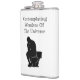 The flask itself is fine. It’s a cheap flask, obviously bought in bulk, however am prepared to overlook that. Given that it is a personalized item, I would have liked to have seen gift boxing instead of the generic packaging. Terrible printing, and/or quality. It’s a cheap, tacky vinyl. It is not cut straight and is also applied in a way that it is overhanging the bottom, causing the glue to catch on items and it will eventually roll and tear, damaging the wrap.