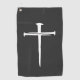 Simple design: three white nails interlaced to make the Christian Cross. Personalise with your name.