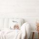 The Throw Pillow for a baby shower features adorable watercolor roses and a cute stuffed bunny.
