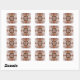 Stickers with "The Tick and The Tock," an abstract fractal, copyright © 2007, Susan Wallace. Repeating geometric pattern of gears and stars, resembling clockwork, in maroon, black, red, orange and yellow with a white background.