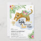 Immerse your little one in the joyous thrill of their 2nd birthday with our whimsically themed 'The Tiger Who Came TWO Tea' invitations. These delightfully illustrated invites feature a friendly tiger energetically pouncing onto a chic tea cup, all adorned with lush tropical florals and foliage. Perfect for bringing a heartwarming touch to your child's afternoon tea party.