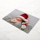 Modern and elegant birth announcement holiday card featuring a newborn photo with a typography text that says "the tiniest noel."