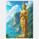 Unleash the spirit of Thailand with this stunning artwork. A majestic golden statue stands tall on a cliff, overlooking a peaceful coastline dotted with boats and framed by lush, tropical mountains. This image perfectly blends serene spirituality with the breathtaking beauty of nature. It's a powerful and calming piece that will add a touch of worldly elegance to any space.