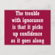 If you're bothered by stupidity (and who isn't?) then you'll appreciate the sentiment behind this humourous line: "The trouble with ignorance is that it picks up confidence as it goes along."