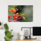 Scripture poster bears these verses from the King James text: "“If ye continue in my word, then are ye my disciples indeed; “And ye shall know the truth, and the truth shall make you free.” John 8:31, 32 Photo shows Zebra Longwing butterfly drinking nectar from a dwarf Royal Poinciana flower.