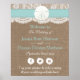 The rustic sand dollar beach wedding collection is a stunning design featuring a lovely rustic burlap effect background with a romantic vintage white lace effect trim finished with a tropical sand dollar and turquoise ribbon. This welcome signs can be personalised for your special occasion and would be perfect for any rustic wedding, bridal shower, engagement party, birthday party and much, much more. Matching wedding items can be found in the collection.