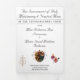 With explanations of the Mass displayed throughout, this elegant design also includes the name of the wedding officiant, names of altar servers, names of the parents of the bride and parents of the groom, wedding party names including the names for a maid-of-honor and best man, room for up to seven bridesmaids and groomsmen names, plus the names of the flower-girl and ring bearer.