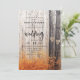 The Two Lovers Carved Trees Fall Forest Design with soft pretty wilderness photography image. A rustic outdoor landscape scene for an adventurous lodge, mountain, retreat wedding, in orange, yellow golds, greys, brown and white. Featuring 2 oak trees with hearts and couple's initial letters carved into them surrounded by a birch forest. Autumn foliage and leaves on the ground, with plenty of branches and twigs. A romantic rustic design for fall - Wedding Invitations!