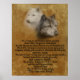 The Two wolves, Cherokee proverb on parchment-look background with watercolor black and white wolves. Inspirational art.