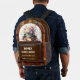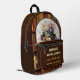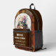 Backpack featuring a vintage watercolor design with books and flowers on shelves with books with brown faux leather. You can add your custom texts (optional). Great for a bookworm, librarian or the book club.